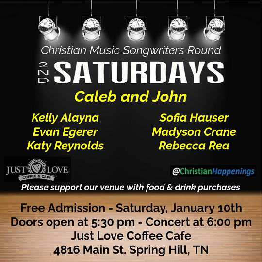 Doors open at 5:30 pm, food and beverages available to purchase. Join us for a live music performance with many of your favorite CCM artists doing a writers round format!